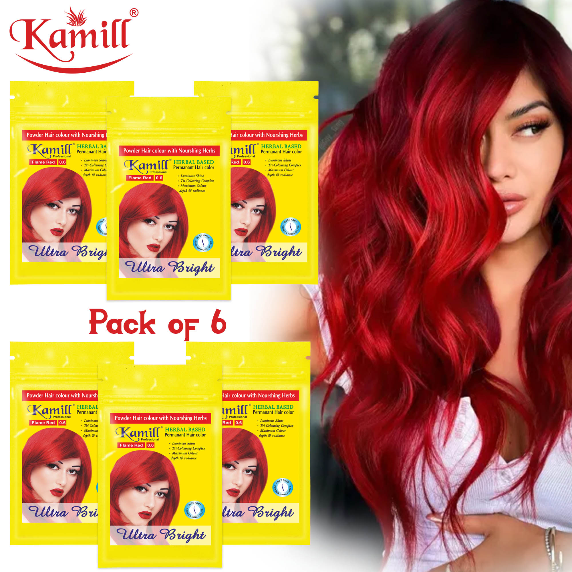 Crafted with a nourishing blend of Keratin, Argan Oil, and Fruit Vinegar, Kamill ensures that your hair not only looks vibrant but also feels healthy and smooth. The ammonia-free formula makes it gentle on your scalp and suitable for all hair types β from normal to dry and color-treated hair. Each Pack of 6 (25 gm each) is ideal for salon use or multiple home applications, ensuring professional results every single time.